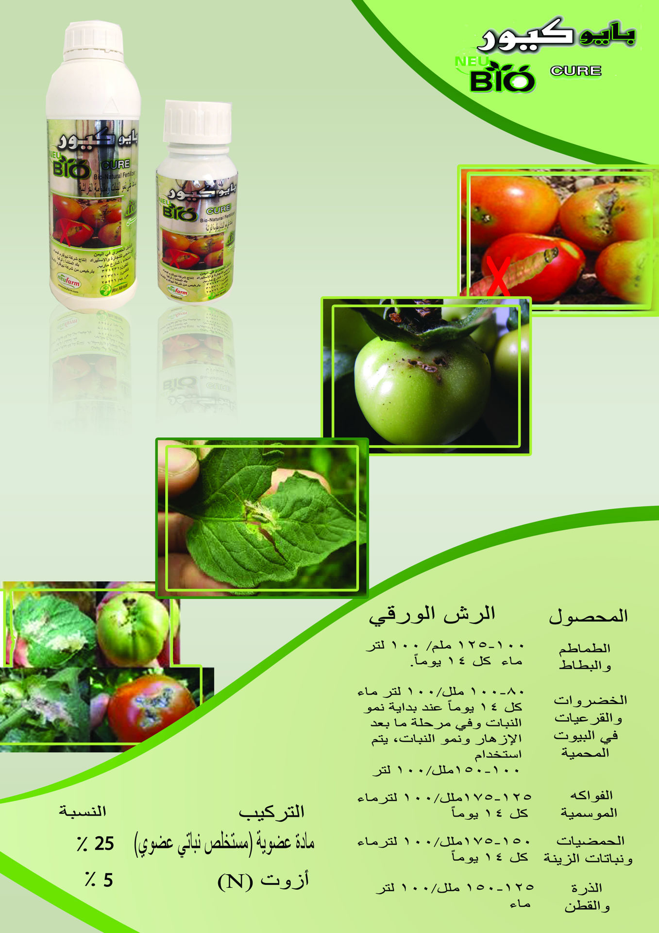 مركب سائل ومستخلص طبيعي له خصائص فعالة ضد العديد من الاضرار التي تصيب النبات يحسن نمو النبات وجودته وانتاجيته له تاثير فعال ضد الحشرات الضارة كما ان له تاثير في التخلص من اطوار حافرة الطماطم (توتا ابسلوتا) ويرقات الحشرات له تاثير فعال علي المكونات الغذائية