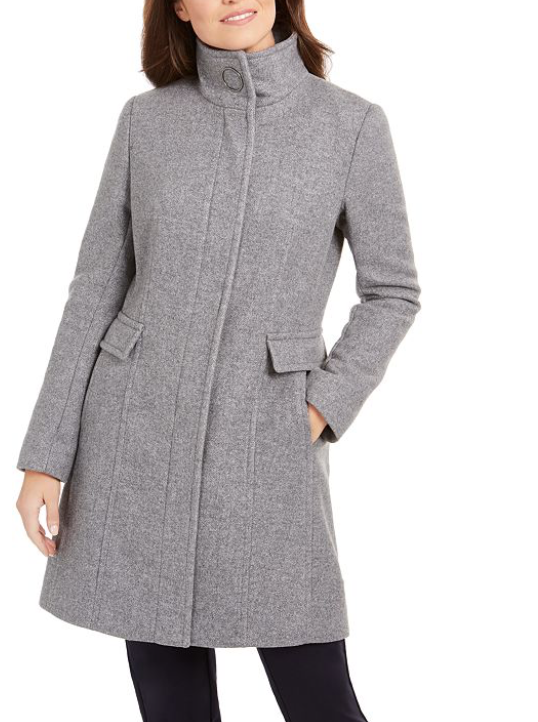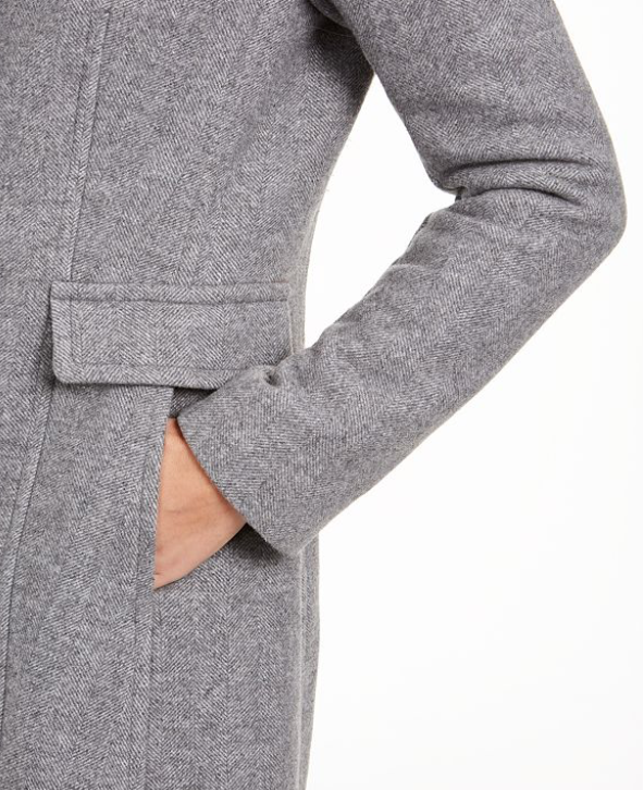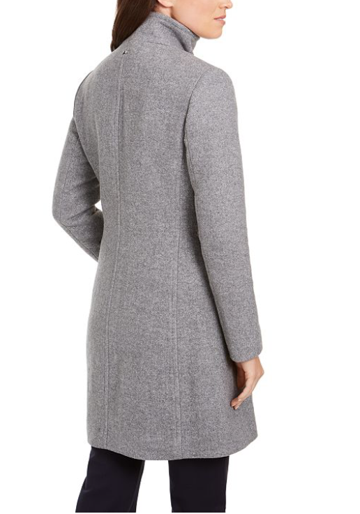 ابتكري خطوطًا كلاسيكية في الصورة الظلية المبسطة لمعطف ووكر من كالفن كلاين ، مع ياقة واقفة وجيبين عند الخصر.