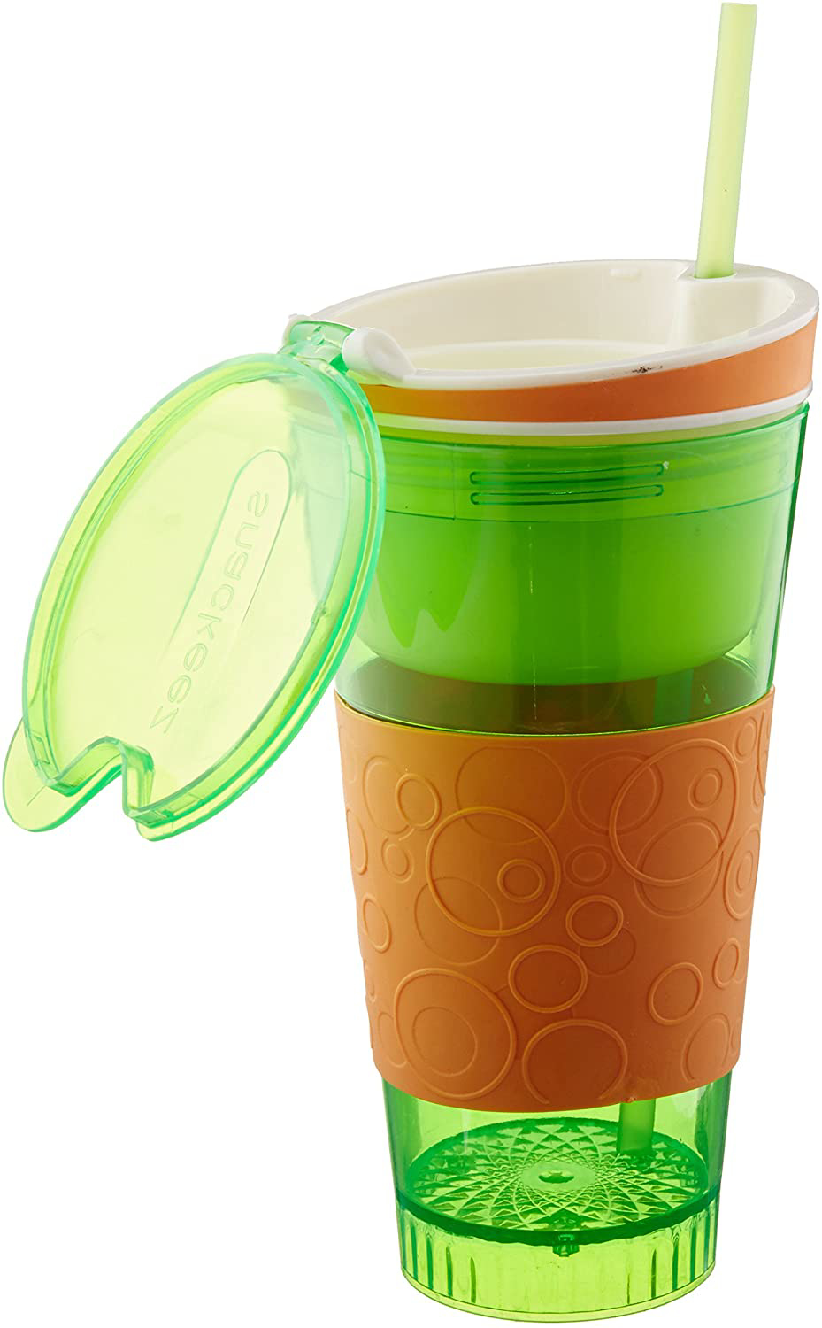 تصميم ذكي يتيح لك الاحتفاظ بـ 16 أونصة. المشروب ووجبتك المفضلة ، كل ذلك في يد واحدة ختم بإحكام للحفاظ على الوجبات الخفيفة طازجة في الكوب آمنة غسالة صحون رائع لتناول الوجبات الخفيفة في السيارة ، على الأريكة في المنزل ، ومثالي للحفلات! عبوة من 2 أكواب تأتي مع 1 أخضر و 1 برتقال