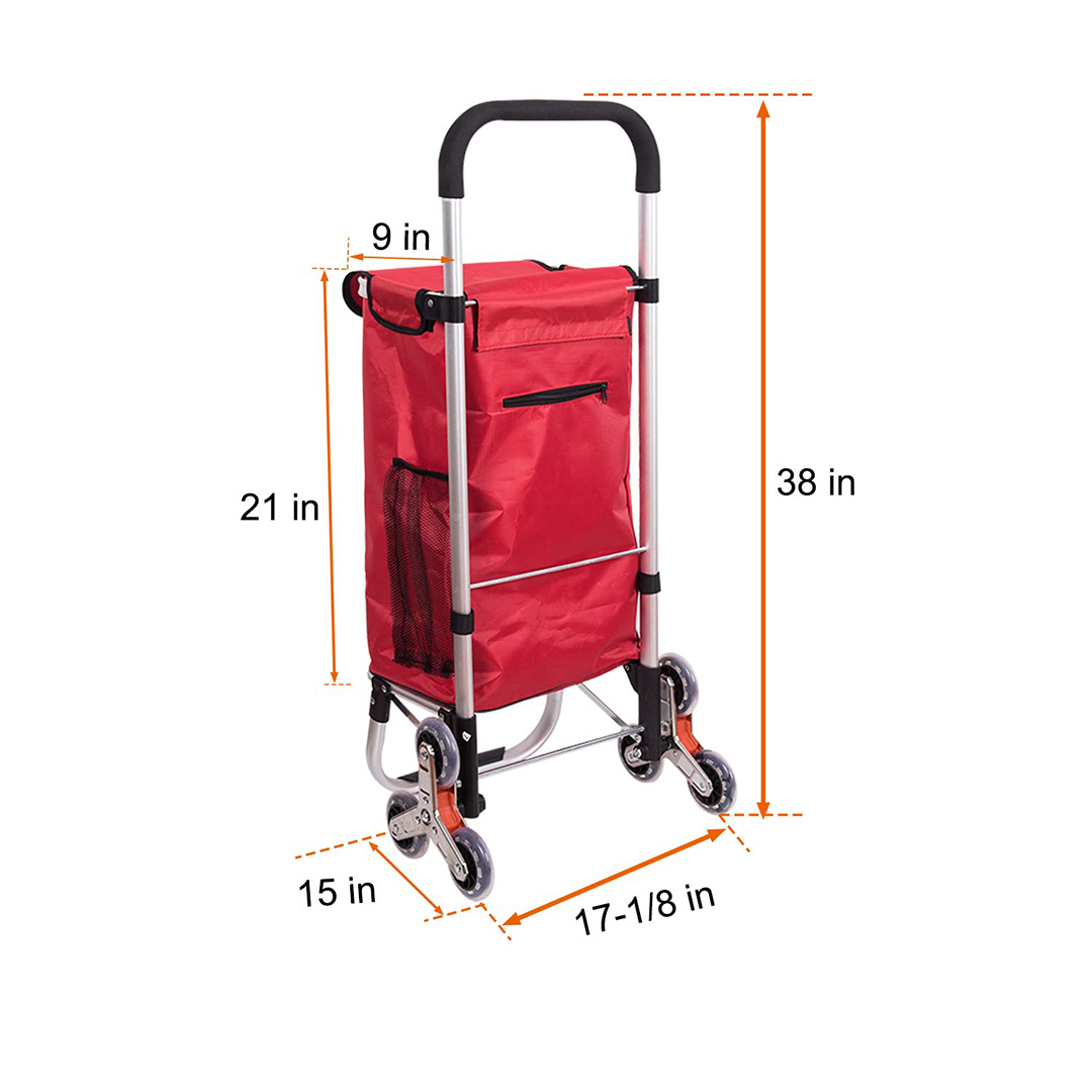 Dolly with Rolling Wheels and Bag Lightweight Grocery Laundry Utility Cart Stair Climber with Wheel Bearings Portable for Shopping, Picnic, Red