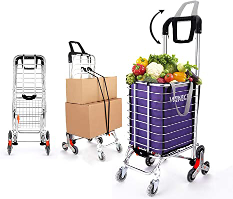 عربة تسوق قابلة للطي متعددة الاستخدامات. تاتي بتصميم يحتوي على 6 عجلات لتسلق السلالم، و يمكن استخدامه لحمل الصناديق الثقيلة أو الغسيل أو البقالة وما إلى ذلك. مصنوعة من نسيج مقاوم للماء ومعدن مقاوم للصدأ.