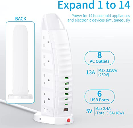 يأتي مشترك الكهرباء هذا على شكل قارب شراعي مع مفتاحين كهربائين و 6 منافذ USB و 8 مقابس.