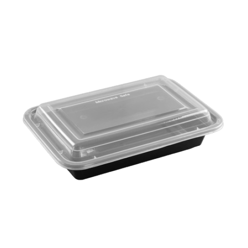 علبة مستطيل مايكروويف أسود بغطاء شفاف 16 اونص