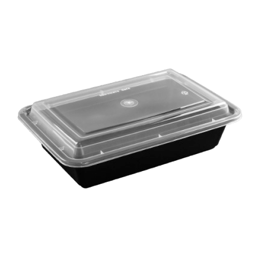 علبة مستطيل مايكروويف أسود بغطاء شفاف 38 اونص
