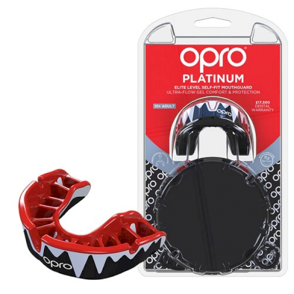 إنه واقي الفم الأكثر تقدمًا ونخبة في مجموعة OPRO Self-Fit. إنها تستخدم طبقة امتصاص بين الفك بفضل بنائها ثنائي الطبقات. يوفر هذا امتصاصًا إضافيًا للصدمات بين الفك العلوي والسفلي. يأتي OPRO Platinum بعلبة مضادة للميكروبات ، مما يعني أنه يمكنك تخزين واقي الفم بأمان مع العلم أنه محمي ضد ما يصل إلى 99.99٪ من نمو البكتيريا. يحتوي واقي الفم نفسه أيضًا على حماية ضد الميكروبات بشكل قياسي في جميع المستويات البلاتينية.