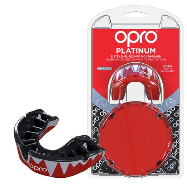 إنه واقي الفم الأكثر تقدمًا ونخبة في مجموعة OPRO Self-Fit. إنها تستخدم طبقة امتصاص بين الفك بفضل بنائها ثنائي الطبقات. يوفر هذا امتصاصًا إضافيًا للصدمات بين الفك العلوي والسفلي. يأتي OPRO Platinum بعلبة مضادة للميكروبات ، مما يعني أنه يمكنك تخزين واقي الفم بأمان مع العلم أنه محمي ضد ما يصل إلى 99.99٪ من نمو البكتيريا. يحتوي واقي الفم نفسه أيضًا على حماية ضد الميكروبات بشكل قياسي في جميع المستويات البلاتينية.