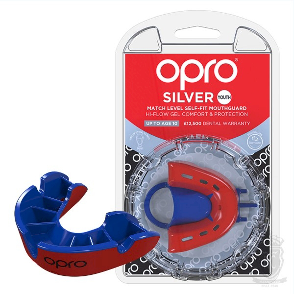 واقي الفم الفضي Opro Gen 4 - أحمر / أزرق (جونيور)