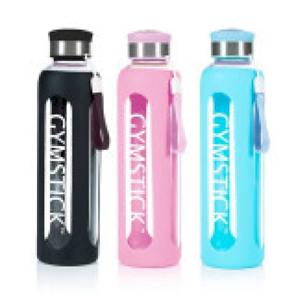 تعتبر الزجاجة الزجاجية الأنيقة من Gymstick خيارًا بيئيًا. تحمي قشرة النيوبرين المتينة الزجاجة أثناء الاستخدام. متوفر بثلاثة ألوان: الوردي والأسود والفيروزي. سعة 0.6 لتر يمكن غسل الزجاجة في غسالة الأطباق.
