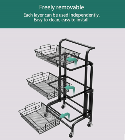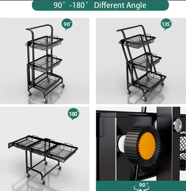 Three-layer design, larger storage space, and can be folded at different angles to change shapes to meet your diverse storage needs. The shelf is equipped with 4 universal wheels. The wheels can be rotated 360°. You can easily move the shelf. At the same time, it also has two brakes to fix the cart to prevent it from sliding. Each layer of the shelf can be disassembled separately, which is convenient for you to clean or use it alone. The bracket adopts a bold design, which increases the load-bearing capacity of the shelf, and the overall structure is more stable and safe.