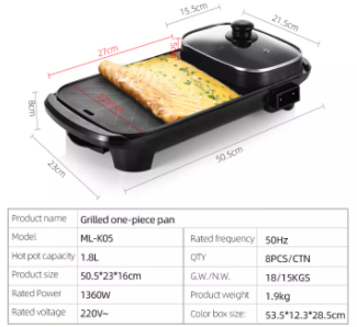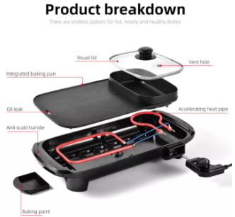 Grill Electric Pan, Multi Function Two-in-one Smokeless Non-stick Barbecue Stone Baking