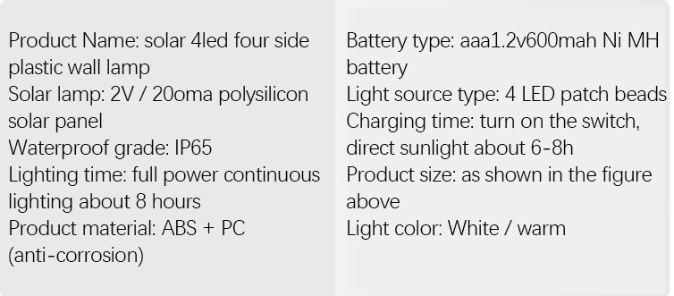 LED Solar Waterproof Lighting Four Sides Wall Lamps For Garden Decoration