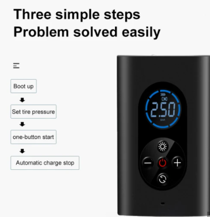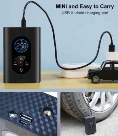 Charging Method 5V 2A Input Pressure 3-150psi Battery 4000mAh Major Function Air Pump, Power Bank , LED Light Lighting 80lum 1h Specification 30X7X8 cm