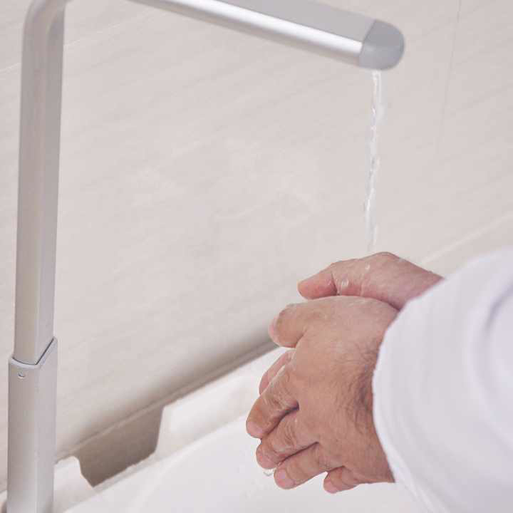 * Multi-functional: washing foot, hands and face in one machine * Portable: can carry to anywhere, no need to connect with faucet or drainage system * Eco-friendly: reduce the water used in the wudu * Safer: no need to elevate your leg to wash it. Size: 33x40x35cm, 72cm with faucet. Material: PP+ABS. Weight:: 5.5kg