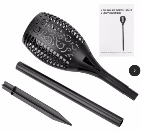 Solar panel - 5.5V/ 0.88W Lithium battery - 3.7V/ 2200mAh Lamp colors - Yellow /red LED - 96pcs SMD2835 LED,1W Charging time - 8 hours Lighting mode - Light on at dusk, light off at dawn auto Imitation of the flame Lighting time - 12 hours