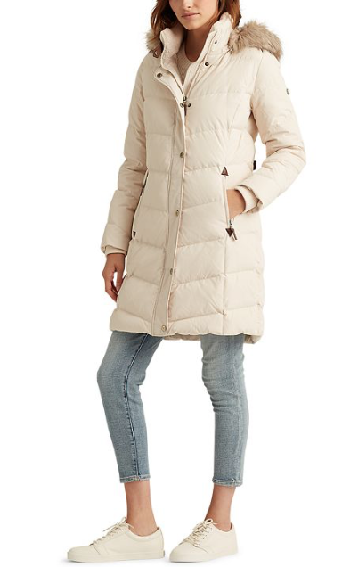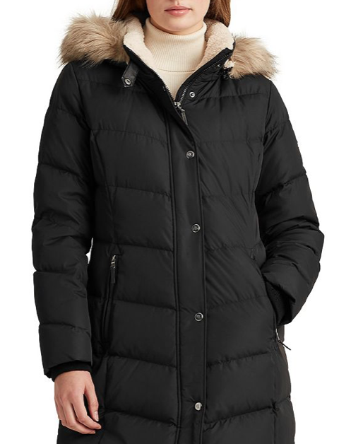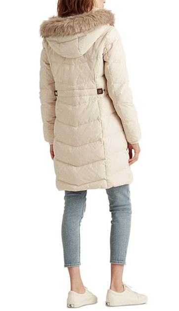 Shell/lining:polyester; hood/body fill: down/water fowl; faux fur: acrylic/modacrylic
